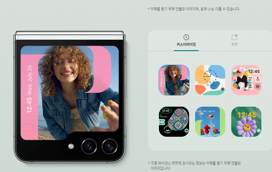 탑재되어있습니다. 외부화면에 위젯,비디오웰페이퍼, 시계화면등 편리하게 편집해 사용